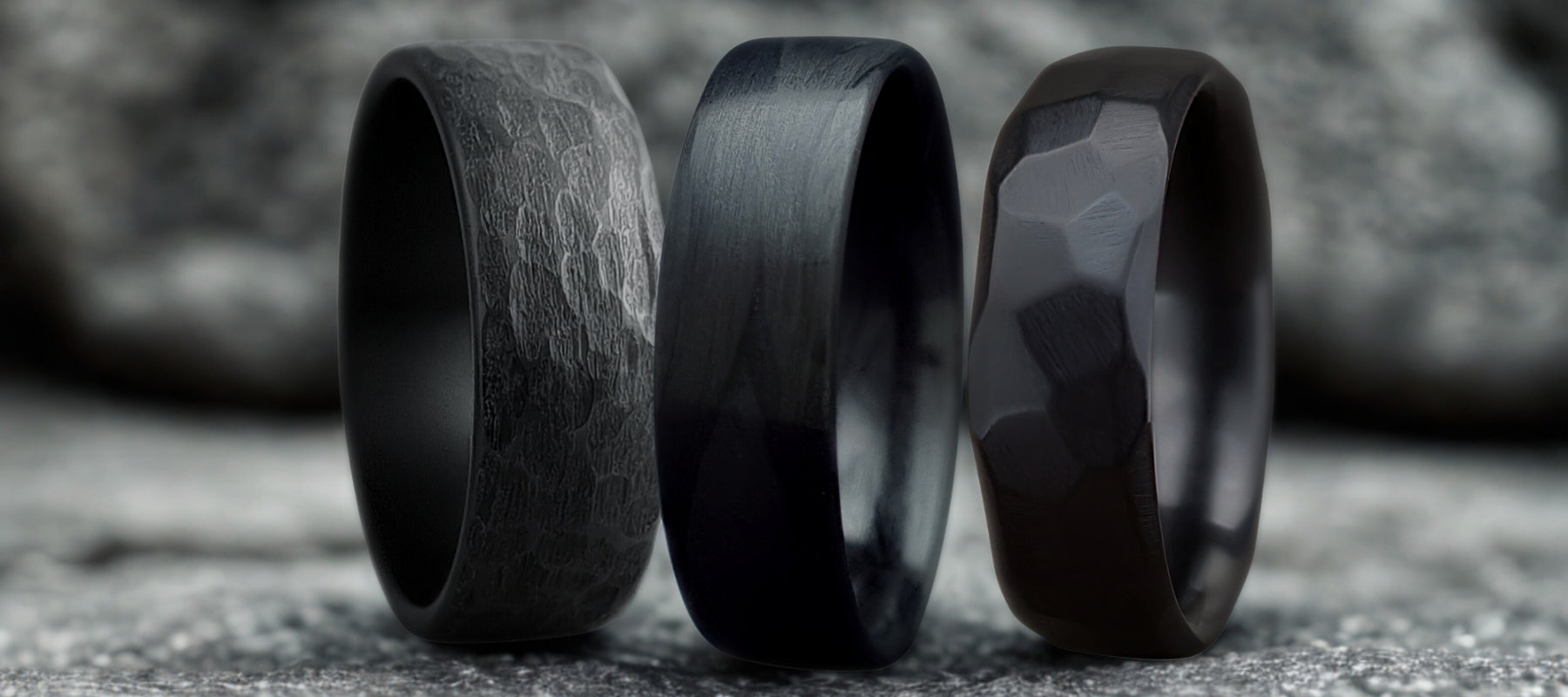 Titan Zirconium Ring – Hammered Black Men’s Wedding Band