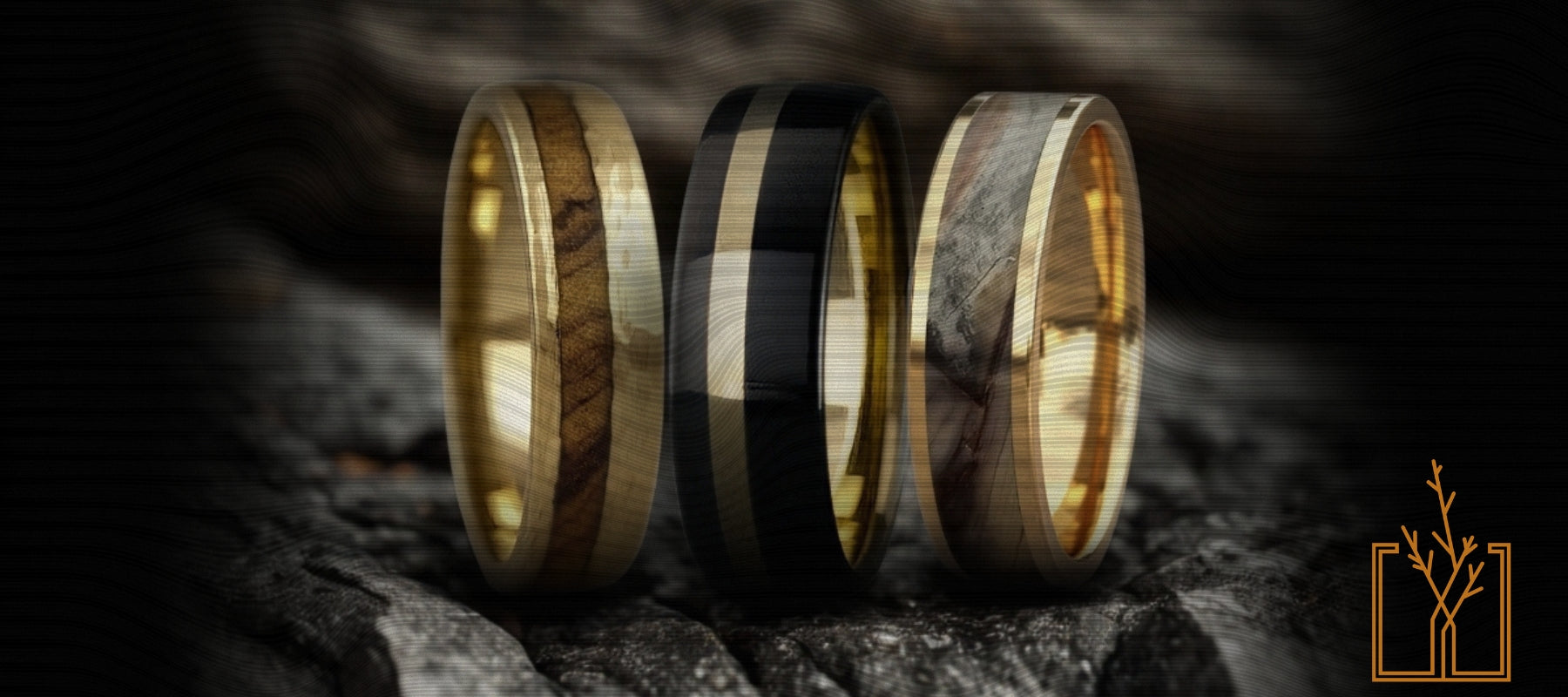 Explore handcrafted men’s wedding rings designed for comfort, character and everyday wear. From classic bands to textured, inlay and statement designs in zirconium, titanium, Damascus and precious metals, this collection helps you find a ring that feels personal and built to last.